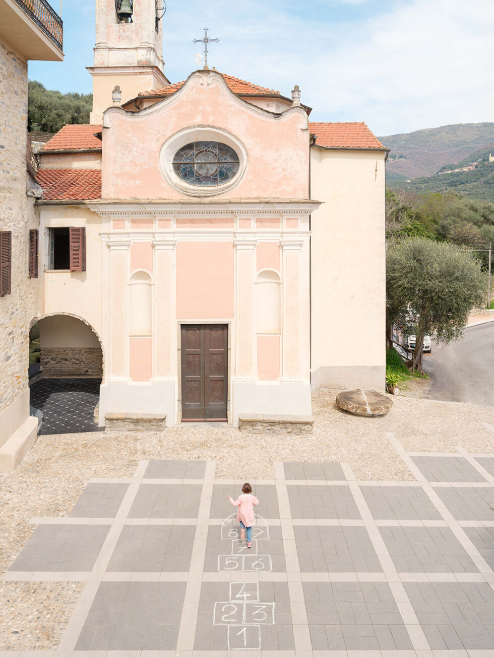 In the heart of the Imperia valley, the village of Olivastri has rediscovered its collective identity through an urban regeneration project that transforms a once-anonymous parking lot into a welcoming pedestrian square rich in meaning. The design draws deeply from the local olive-growing tradition, reinterpreting symbolic elements such as olives and the nets used for harvesting through a geometric composition that, while structured, evokes the irregular, flowing movement of nets swaying between branches.