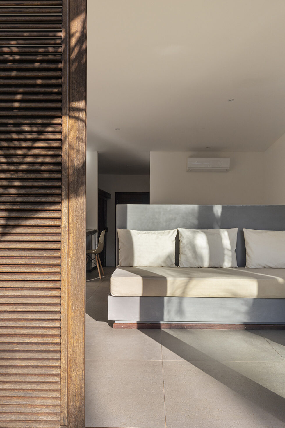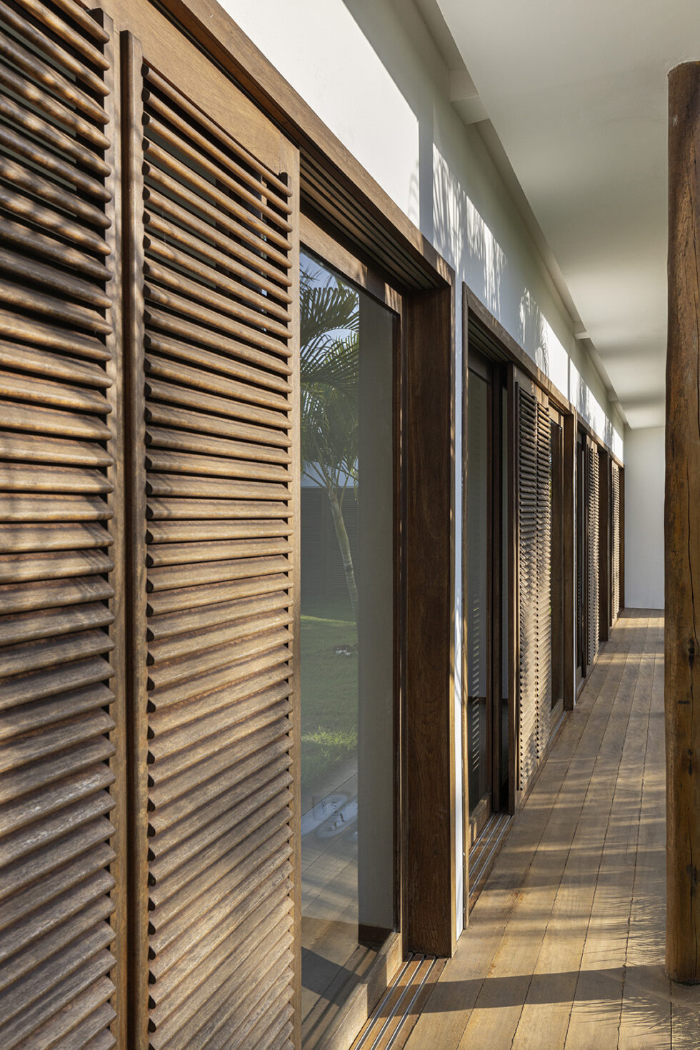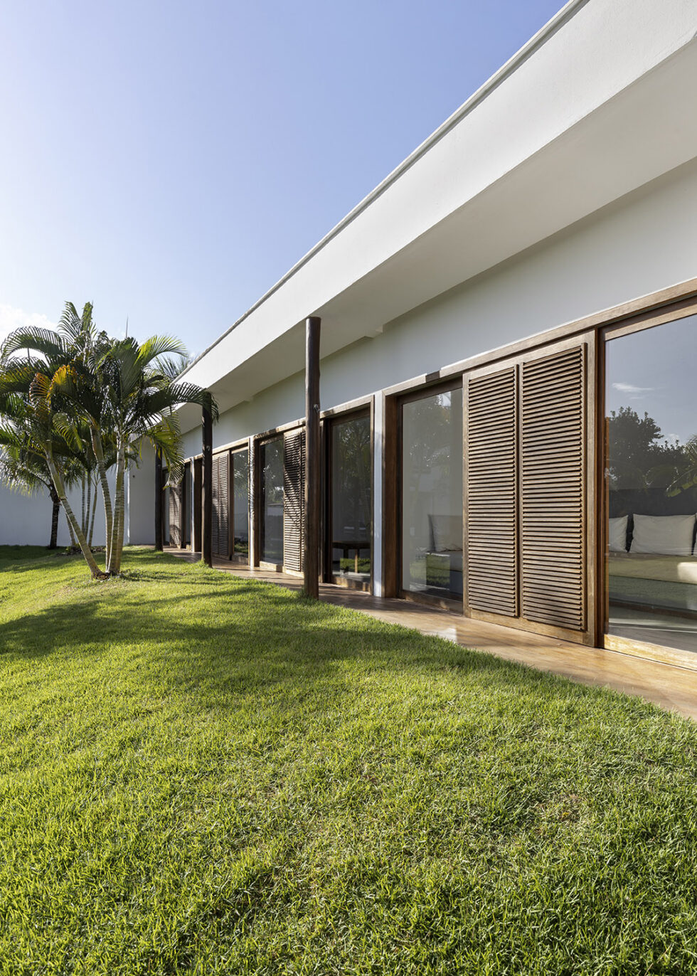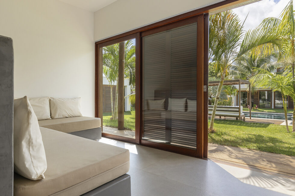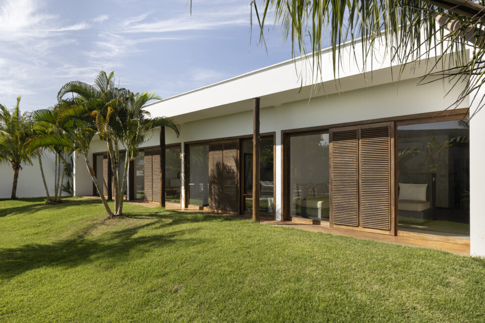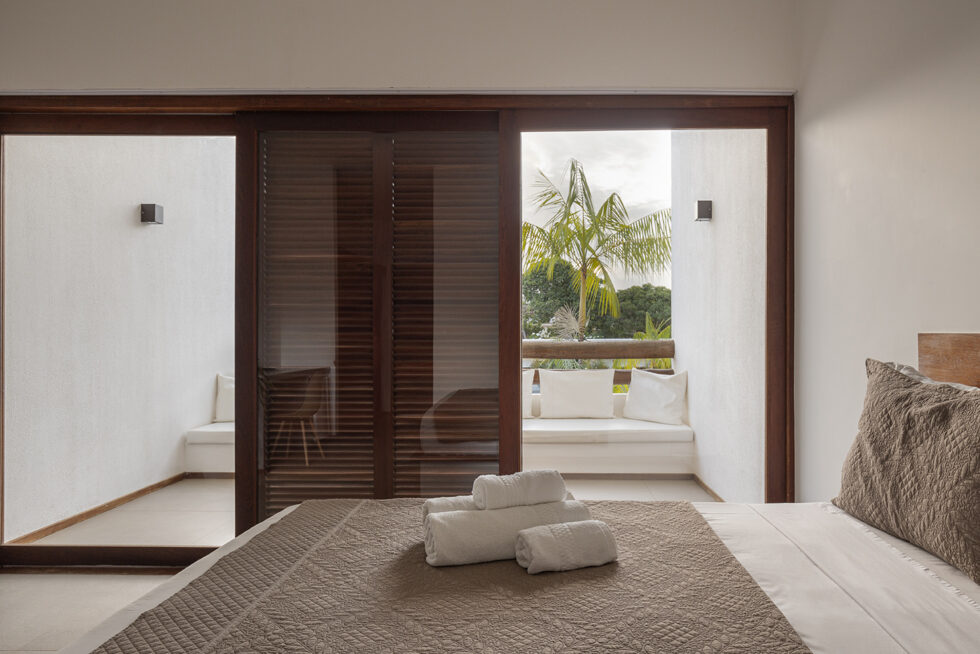 The bioclimatic architecture of Pousada Portofino, with excellent thermal and acoustic insulation, ensures superior comfort. The large windows, protected by elegant wooden brise soleil, not only offer a pleasant shelter from the sun but are also a distinctive element of the architecture, creating suggestive plays of light and shadow.